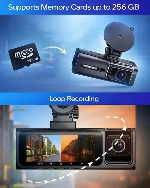 When the memory card reaches full capacity, the dash cam automatically begins recording new videos over the old ones. This eliminates the need to manually clear the microSD card and ensures continuous operation of the device. The entire process is fully automated and requires no attention from the owner.