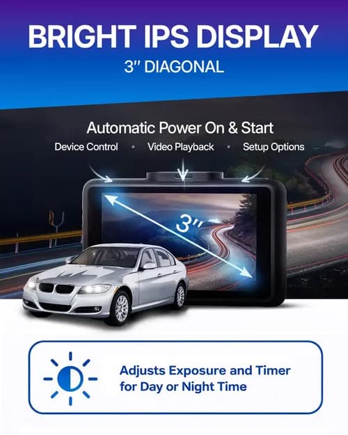 The large 3-inch display allows all necessary information to be presented with sufficiently large font. The IPS technology matrix ensures a wide viewing angle. In the dash cam settings, you can set the brightness level separately for day and for night, which eliminates the need for constant, even daily, manual adjustment.